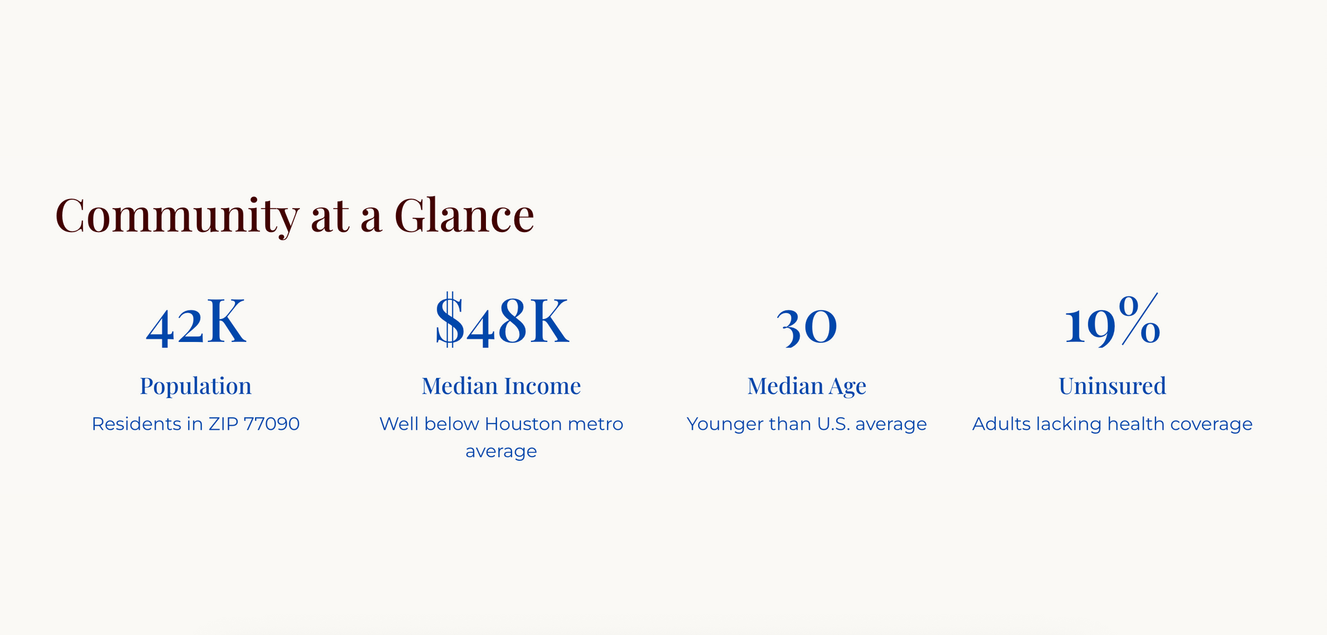 We provide a detailed demographic overview and data-driven analysis of your operating landscape. This includes crucial socio-economic indicators such as population size, median household income, median age, educational attainment rates, housing composition (e.g., high rental density), and challenges like the percentage of uninsured residents.